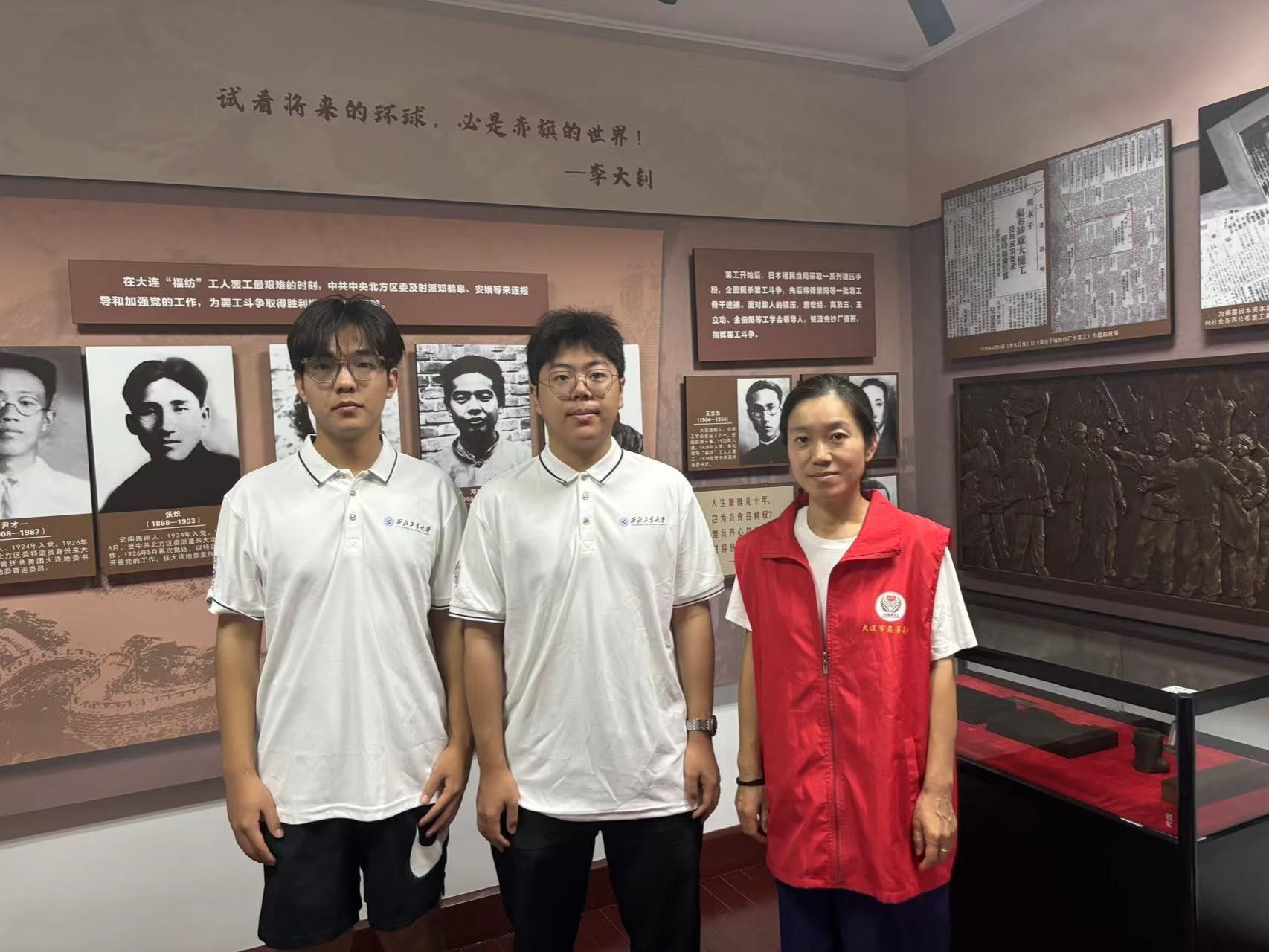 通过讲解员振奋人心的讲述和旧址纪念馆负责人进行深入的交流,队员们了解到大连中华工学会成立于1923年12月2日,是中国东北地区建立最早、最先接受中国共产党领导的工人团体,也是大连地区最早的产业工人的市级工会组织。在中国共产党的领导下,中华工学会发动了震惊中外的“福纺”纱厂工人大罢工,罢工坚持百日以胜利告终。大连中华工学会推动了大连工人运动的兴起和反帝爱国统一战线的形成,是中国共产党领导下的中国工人运动的重要组成部分。