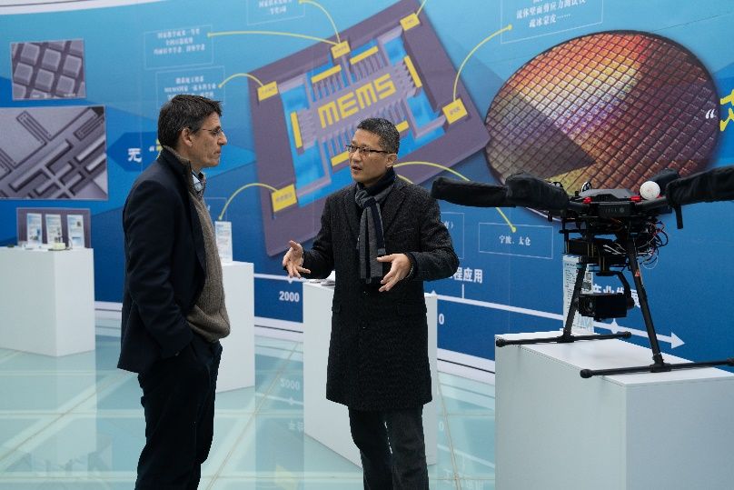 深空探测联合实验室、空天微纳系统教育部重点实验室。常洪龙教授为奎洛兹教授介绍了实验室近年来在深空探测领域的工作进展,包括用于火星生命探测的液相色谱仪、乘员健康保障的流式细胞仪、用于火星环境感知的微机械惯性和电场传感器、用于地外探测器着陆保障的偏振光光谱成像系统,以及用于空天飞行器减阻防冰的灵巧蒙皮等。奎洛兹教授对实验室取得的成就表示高度赞赏。