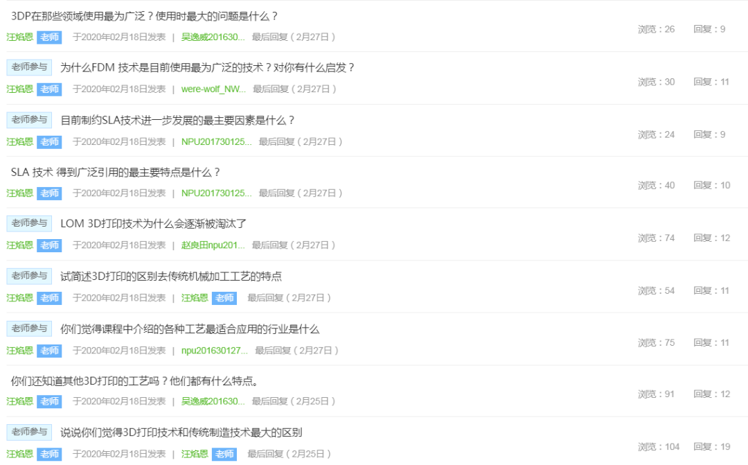 航空宇航制造工程系蒋建军教授第一周有《飞行器零件成形技术》《先进复合材料制造技术》和《新生研讨课》等3门课,上课压力比较大。他提前做好平台网络卡顿的预案,并将各种预案在正式授课之前和学生充分沟通,保证学生使用过程的流畅;针对网上授课的特点,准备了充分的课堂资源供学生课前了解和课堂使用,保证网上课堂教学的效果。他在《新生研讨课》中为课程教学设计课堂话题,与学生开展充分的互动,保证学生随时都能跟上课程教学的思路和节奏。