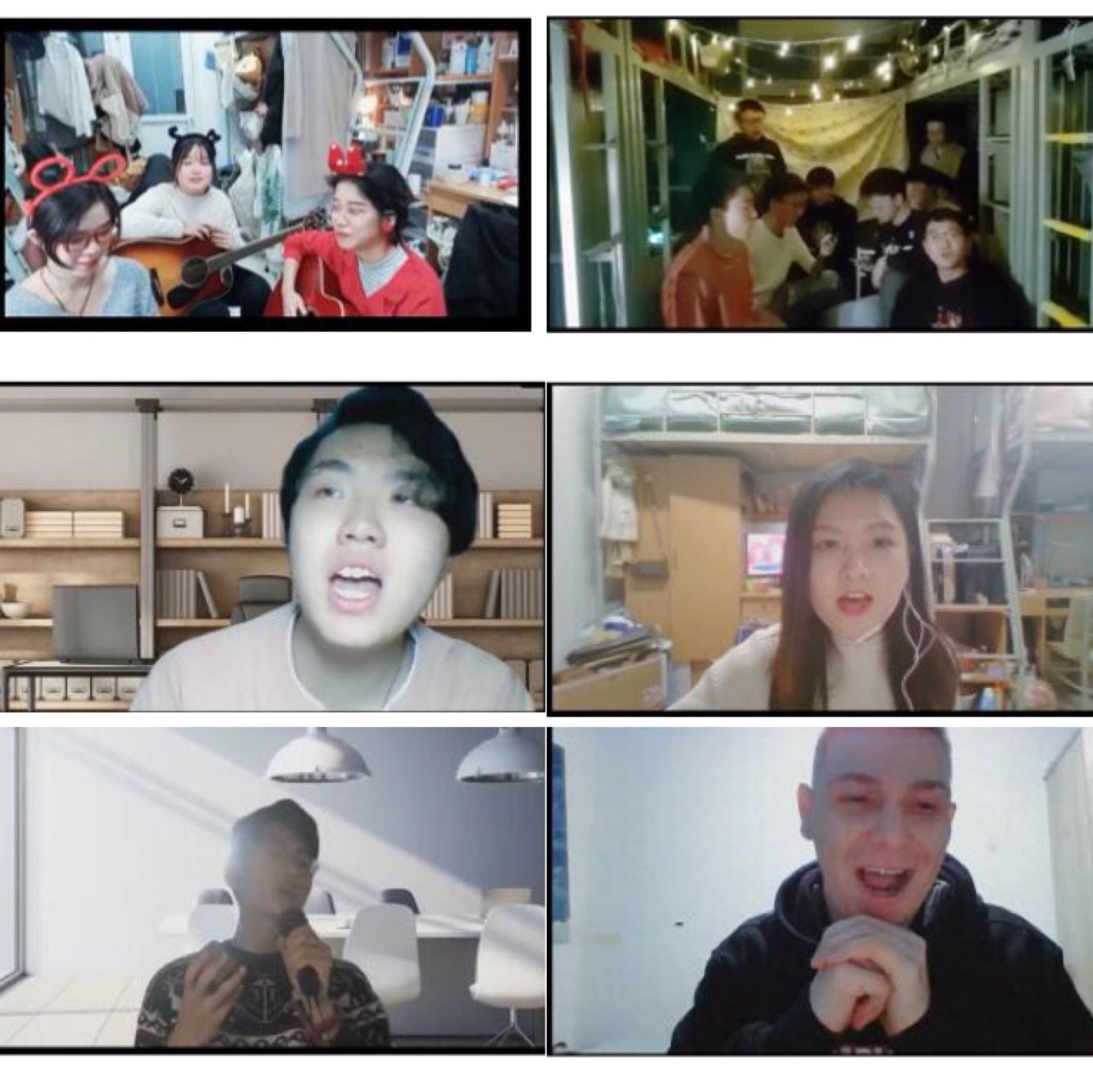 21点30分左右,进入大联欢阶段,各年级同学在宿舍中,利用有限的条件呈现了精彩的节目:独唱《孤勇者》(18级工设陈宁)、《弯弯的月亮》(19级工设李玥霆)、《带我去很远的地方》(2020级硕研汪婕)、《作曲家》(2020级硕研刘子琦),合唱《生日祝福歌》(2021级硕研231女生宿舍)、《平凡之路》(2021级硕研男生),动人的歌声唱出了奋斗着的年轻人来自心底的坚毅,为疫情中的同学们加油打气,标定了团结一心的精神坐标,重塑了同学们彼此心中希冀的美好愿望;孙意为等博研的影视剧配音,描述了他们在西工大的科研与学习生活,趣味十足,将整场晚会推向高潮;最后,来自俄罗斯的留学生阿悟珖同学带来一首《Over The Rainbow》,用轻柔欢快的歌声表达对美好未来的向往与乐观的精神。