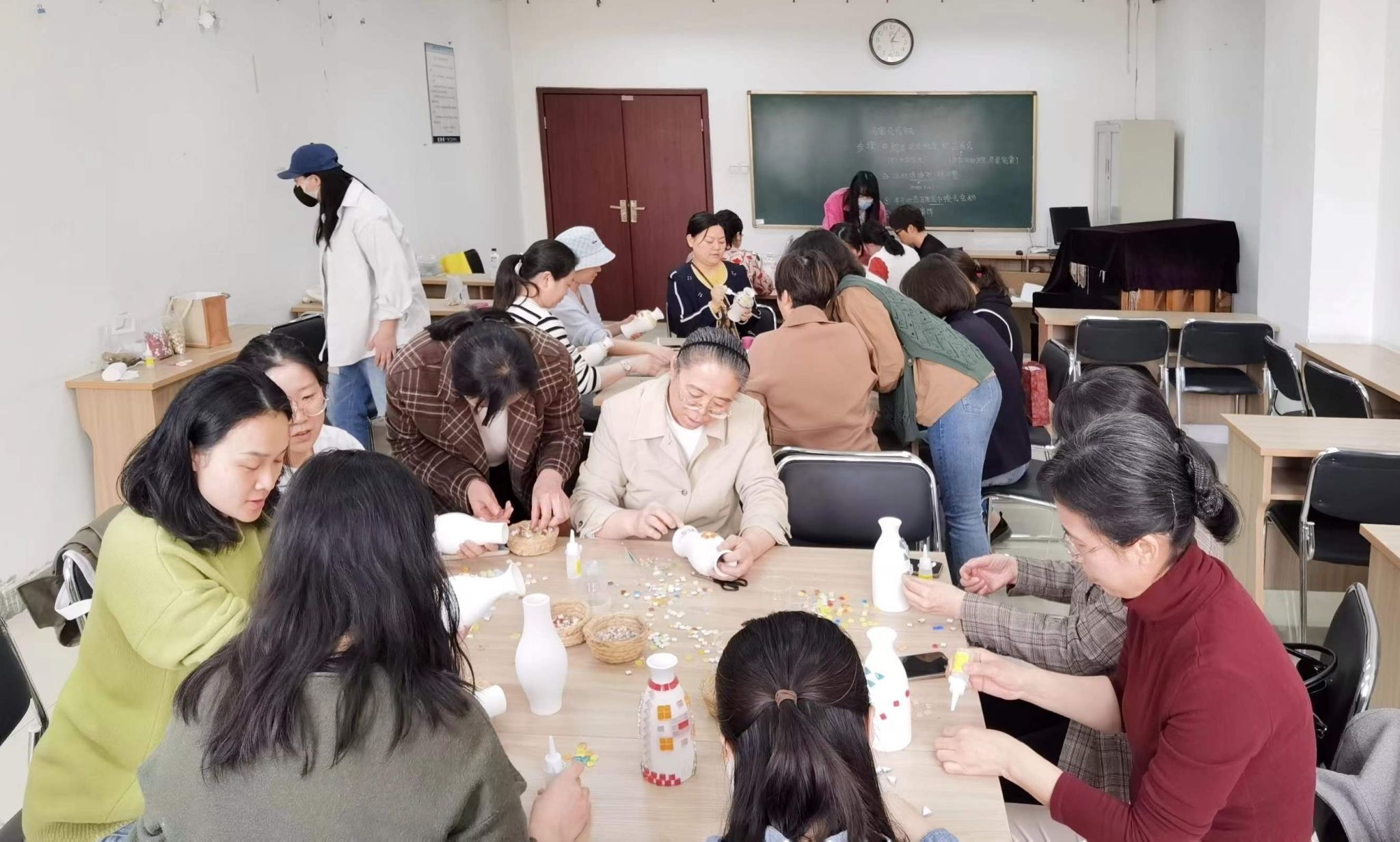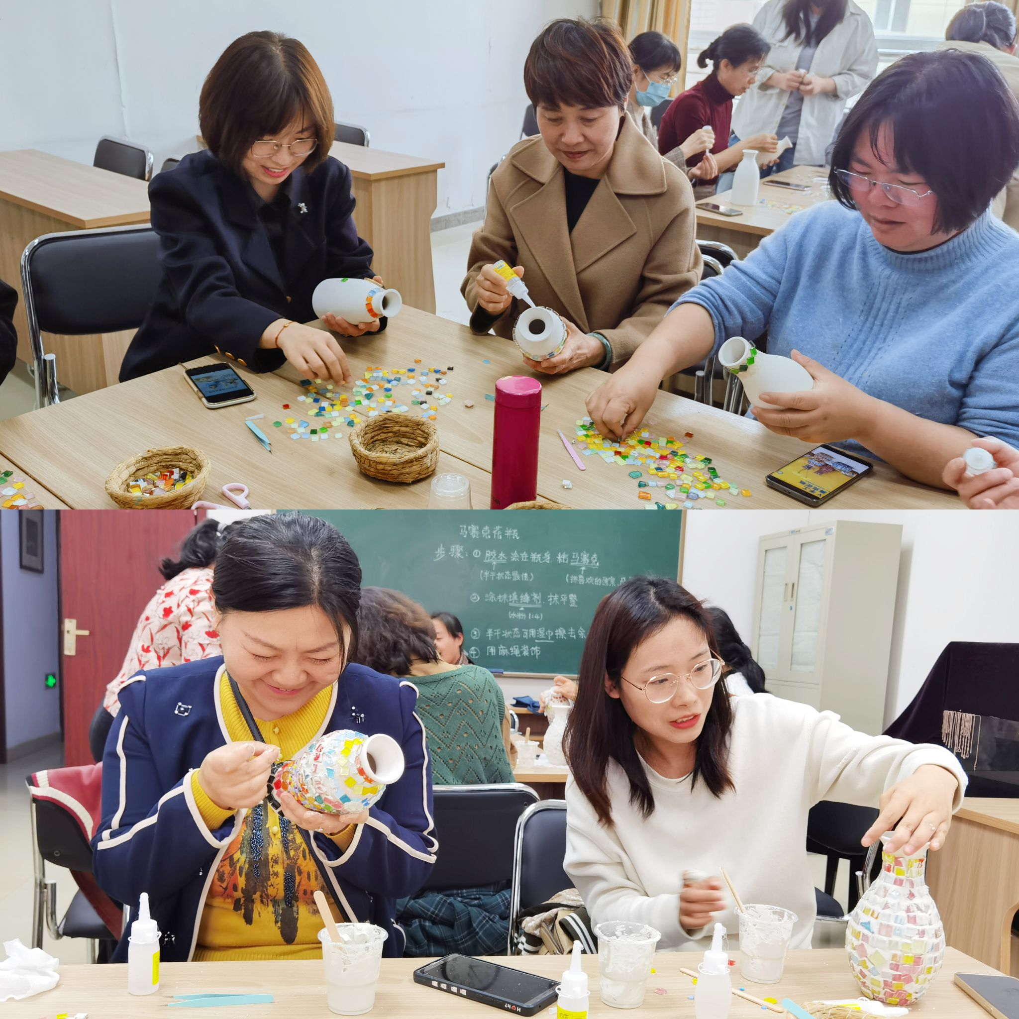 工会组织开展了“时间向前,青春不走”女神节马赛克花瓶手工制作活动,20余名女教职工参加此次活动。