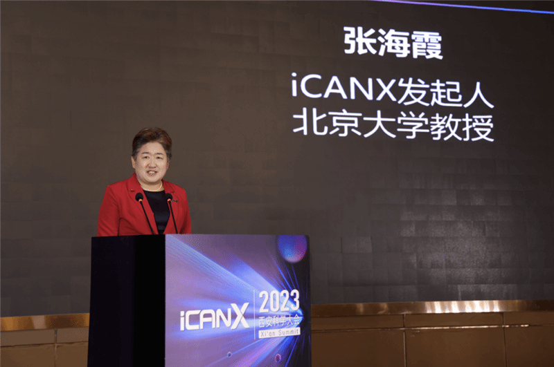 iCANX创始人、北京大学张海霞教授向与会嘉宾介绍了iCANX科学平台。她指出,iCANX旨在打造以全球科学家为核心的生态体系,促进国际科学交流与合作。