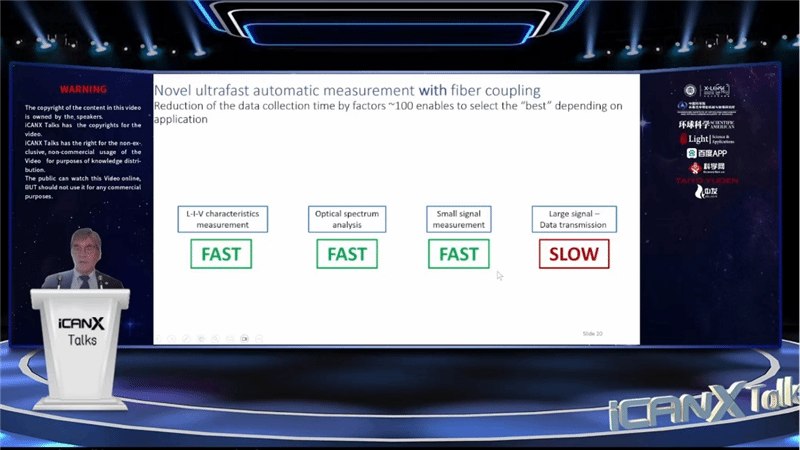 5月19号晚,美国工程院院士、柏林工业大学Dieter Bimberg在线上作题为《Green Data Communication: The Next Challenge after 5G》的大会主旨报告,介绍近期在高速、低功耗垂直腔面发射激光器(VCSEL)研究方面取得的进展。