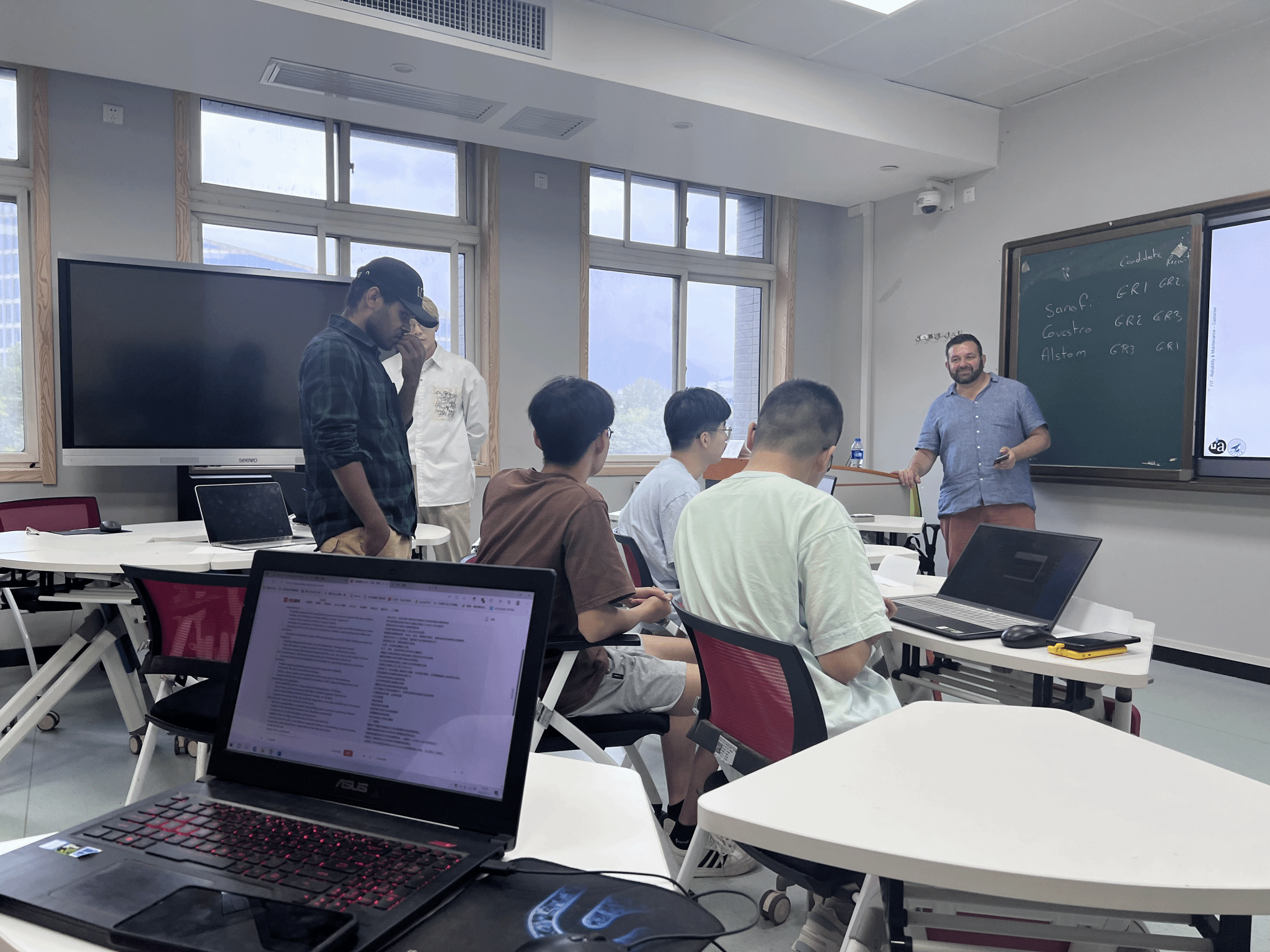 受朱文金老师邀请,7月3日—7月13日法国昂热大学CASTANIER Bruno教授讲授《可靠性数据分析与维修课程》。这门课主要讨论可靠性定义、数据分析与建模工具以及维修问题的介绍,课程总时数为24小时。主要教学内容包括:第一章和第二章回顾了可靠性的基本要素和定义。为了加深对这些定义的理解,学生们进行了一个通用的案例研究,通过逐步建立和评估一个复杂的可靠性模型,解决估计剩余寿命的问题。在介绍该领域的经典技术之前,通过分析数据驱动方法获得的结果,介绍了人工智能中的一些基本工具,如bootstrap、k-means等。第三章主要讨论了复杂系统的建模。这些系统由多个部件组成,目标是根据每个组件的性能和系统结构来评估系统性能。第四章是对工业维修问题的介绍。在这次课程中,学生们分别扮演应聘人员、招聘委员会成员和评审人员进行了一场面试模拟,通过提问和回答问题加深对维修问题的理解。课程的第二部分重点是通过一个简单的案例,让学生思考经济性能和维护优化的概念。