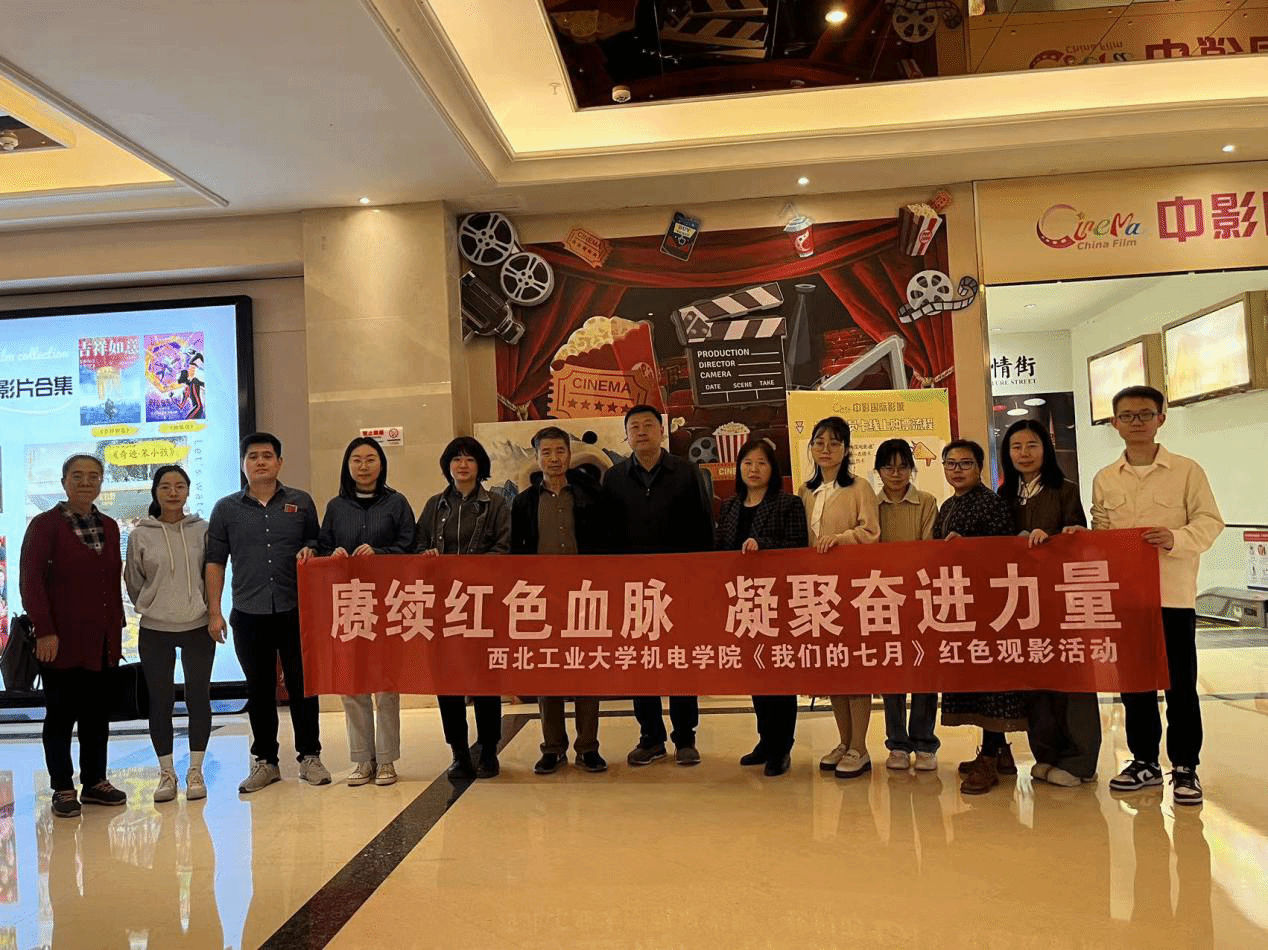 机关党支部党员教师以及学生党员于大唐西市观看电影《我们的七月》。该影片以扶眉战役为背景,讲述了解放战争中国共双方在渭河以北的激烈战役。影片以讲述回忆与情景再现的形式,重现了我军战士不怕牺牲,浴血奋战的战斗场景,也讲述了战友之间同甘共苦,生死与共的革命情谊。