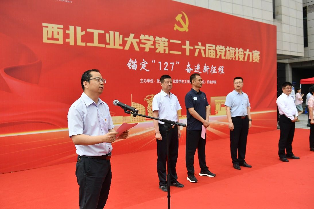 党委致辞,向参加比赛的各位同学、老师表示热烈的欢迎,向辛勤工作的裁判员、志愿者和工作人员表示衷心的感谢。他指出,党旗接力赛是西工大的特色活动,以党旗接力的形式,象征党的优秀传统代代相传,近些年来活动的影响力显著提升。他希望本届党旗接力赛各参赛队伍能够团结协作,共同支持,磨练意志,赛出风格,赛出风采,为实现JavBus