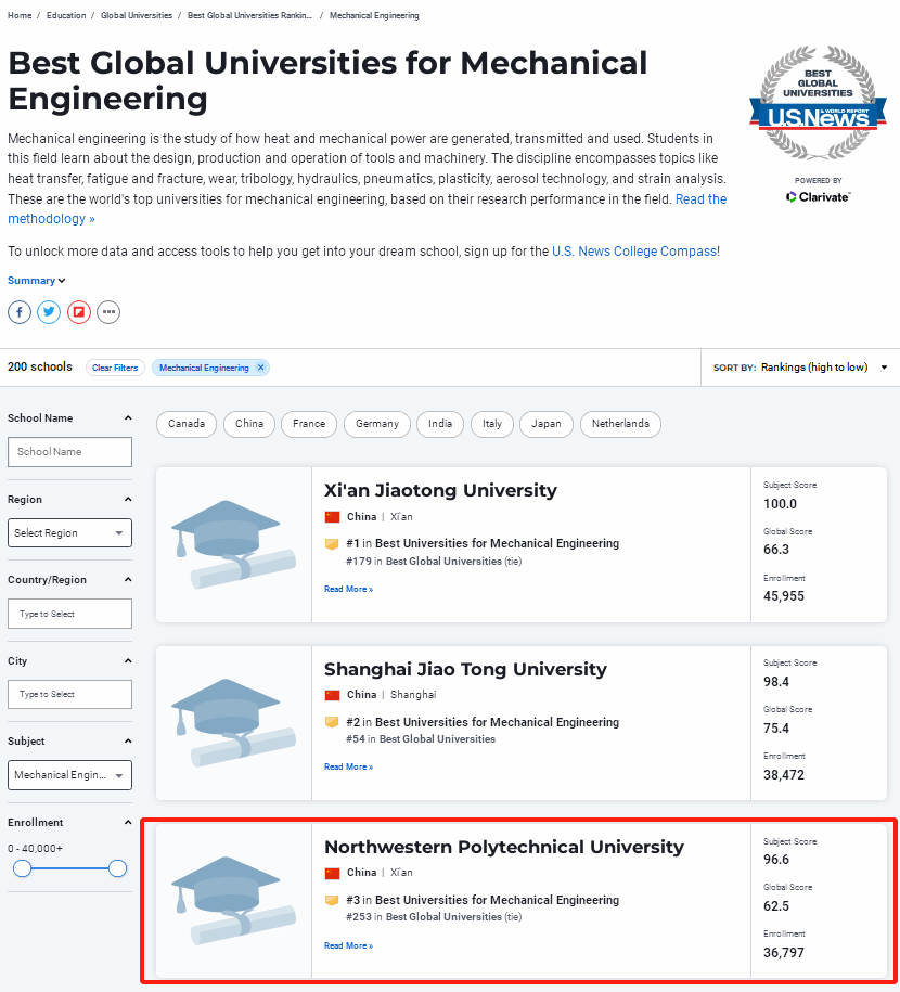 机械工程学科在世界大学学科排名中位列全球第三,相较去年有大幅提升,学科特色更加鲜明、综合实力显著增强、国际声誉和影响力进一步提高。