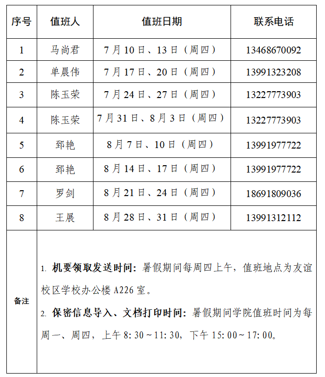 JavBus 2022-2023学年暑假保密机要值班表