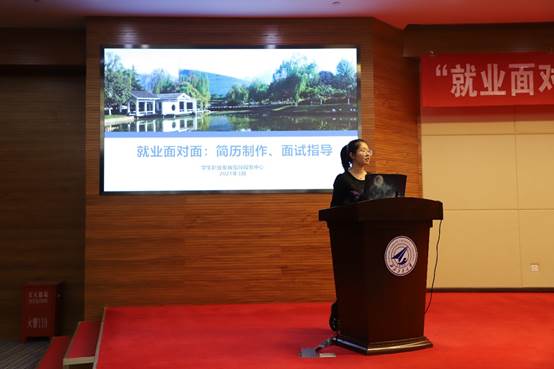 学生就业指导服务中心的樊文迪老师和李慧老师参加了此次会议,并针对学生关心的就业政策及就业流程、求职中的注意事项等做了详细的讲解。