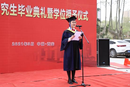 毕业生代表马晨阳同学发言,言语中表达了对母校的不舍,又饱含感激之情,同时坚定了即使未来道路漫长,路上无数挑战等带突破,无数机遇等待把握,也会不忘初心,心怀敬畏,乘风破浪!