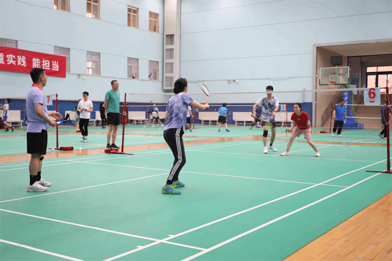 各单位教师组成,学生队则遴选出各年级羽毛球精英。首场混双对决便点燃全场,青年教师的混双组合以默契配合首先夺得一分。学生队不甘示弱,在男单比赛中,研一学生小赵凭借灵活跑动和精准扣杀为队伍扳平比分。赛场内,白色羽毛球如流星般穿梭,场边“老师加油”“师弟稳住”的助威声浪此起彼伏。