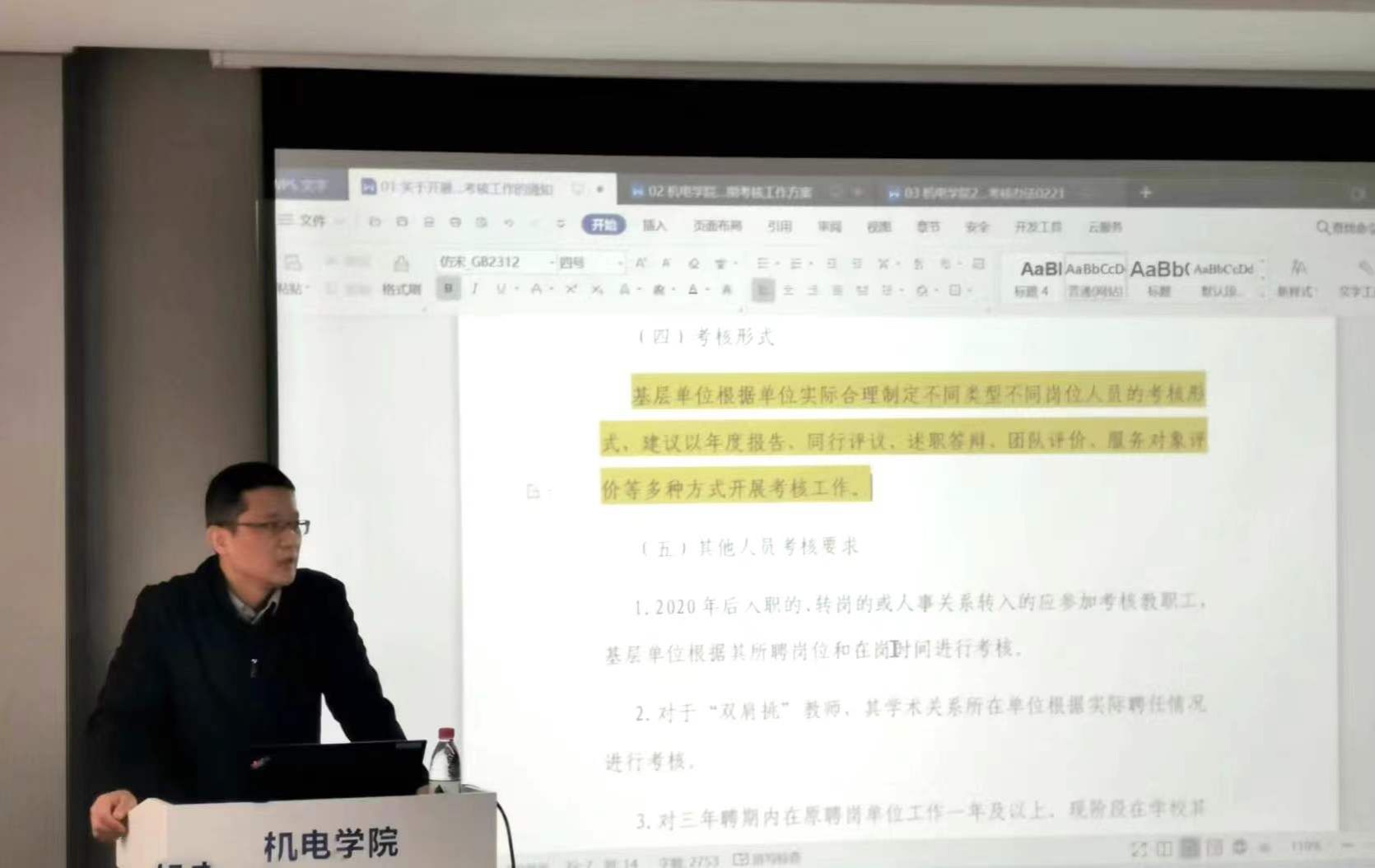 聘期考核任务完成度量化计算细则(讨论稿)》等文件,从政策导向、评判规则等方面对教学科研岗和科研岗的部分进行了详细说明。副院长常智勇对实验岗的部分进行了汇报讲解。