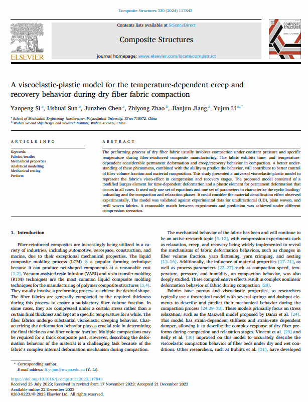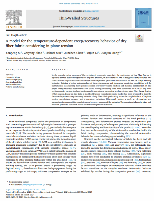 建立复合材料预成型工艺本构模型,优化复合材料液体成型工艺过程