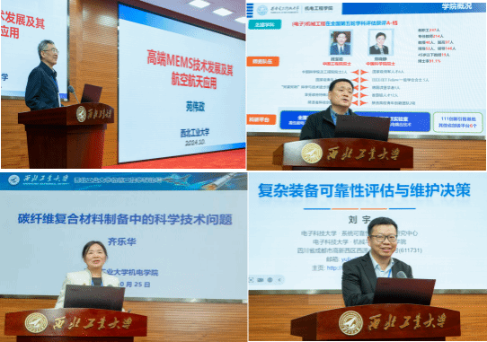 齐乐华教授和电子科技大学刘宇教授分别就高端MEMS技术发展及其航空航天应用、智能喷涂机器人关键技术发展与挑战、碳纤维复合材料制备中的科学技术问题、复杂装备可靠性评估与维护决策等作主旨报告。
